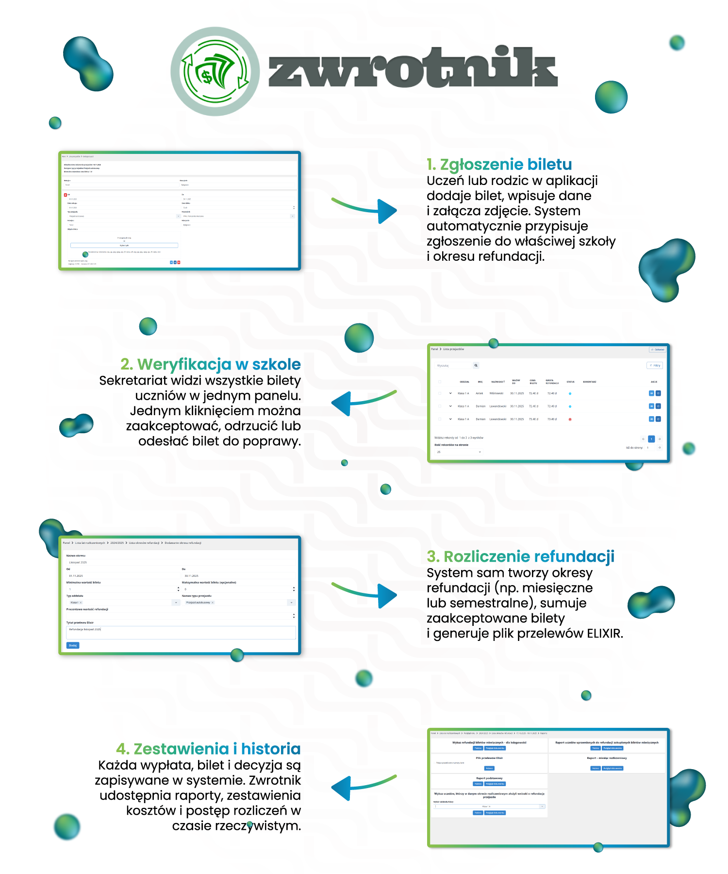 Zwrotnik rozwiązuje te problemy, cyfryzując cały proces – od zgłoszenia biletu po przelew na konto rodzica.